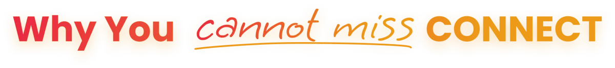 One weekend at CONNECT can replace months, or even years, of trial and error. Get the strategies, tools, and momentum you need to move faster with less friction and far better results. Stop wondering what's possible. Let's make it happen!